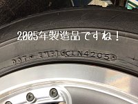 コチラのタイヤは製造より2005年製で16年経過しております! サイド部分はコチラ! やはりゴム製品ですので、年数と共に劣化は免れません・・・ 人間でいう骨格の部分に達するような深いヒビ割れは本当に危険です(;´・ω・) 皆さんのタイヤは大丈夫ですか? タイヤ館では無料点検実施中です! タイヤ点...