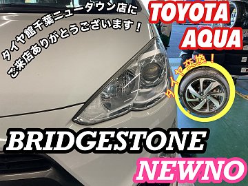 タイヤ館千葉ニュータウン店のホームページをご覧いただきありがとうございます! 本日は、【トヨタ/アクア】のタイヤ交換をご紹介します! 今回装着したタイヤは 【NEWNO】です! 雨の日の安全性能はもちろん、 タイヤのライフ性能や低燃費性能といった 経済性も併せ持っているタイヤです! また幅...