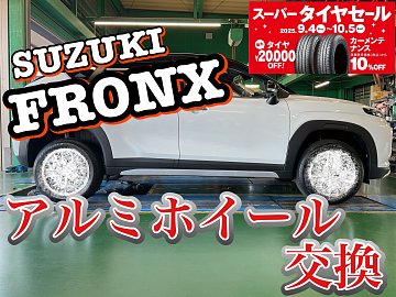 こんにちは!山田です!! いつもタイヤ館千葉ニュータウンをご自愛いただき ありがとうございますm(_ _)m 今回は!!【スズキ/フロンクス】のホイール交換 を実施しましたのでご紹介です!!o(`ω´ )o 最近、走ってるのを見かけるフロンクス! 丸みのあるコンパクトSUVで、後ろからのフォルムが可...