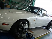 本日は マツダ ロードスター 足回りを車高調整式のサスペンションに交換されたということでのアライメント作業になります。 4番目の写真をみていただくと解るとおり全て赤の数字ということは基準値に何処も入っていないというのが現状でした。 ロードスターはリアのトー、キャンバーフロントのト...