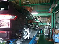 本日は、トヨタ・アルファードのご案内です。 この型式だと、そろそろ距離を走った車も増えてきましたね。 大事に乗っていただくためには、やはり定期的な点検が必要になります。 今回はそんな点検の一つ、アライメントの調整になります。 お手つきの場合はピットにてわかり易く、現状報告を実施し...