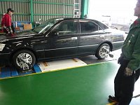 本日のアライメント お車 レクサス IS250 今回も後ろのタイヤ、前のタイヤともにがに股状態。 綺麗に真っ直ぐ整列させましたので、気持ちよく走ってくれればいいのですけど!!