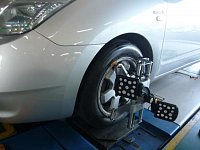 本日はお車 トヨタ プリウス 昨年タイヤ交換していただきローテーション(前後の付け替え作業)とアライメントの定期健診(長持ちプラン)でご来店頂きました。 結果右前のトーがかなりずれてしまっており、調整させていただきました!! 知らぬ間にずれていくことも自然にありますし、どこか乗り...