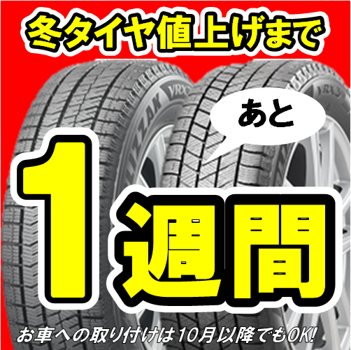 冬タイヤ値上げまであと1週間! ポスト 2025年8月24日 冬タイヤの値上げまであと1週間! 冬タイヤをご検討中の方はぜひご相談ください! タイヤをお持ちいただければ無料で点検もいたします! 値上がり前のこのタイミングにぜひ! また、夏タイヤの在庫売り尽くしも強化中! ご来店お待ちしております! 担当:柴﨑