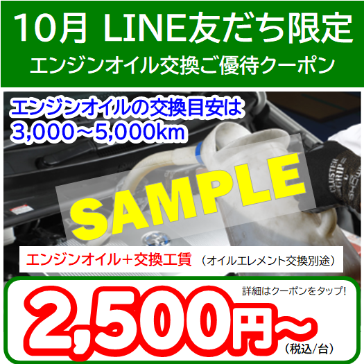 10月のLINEクーポン! ポスト 2025年10月3日 今月のLINEクーポンの案内です! 「エンジンオイル交換ご優待クーポン」です! オイル交換は、車の性能を保つために とても大切なメンテナンスです。 エンジンオイルは、エンジン内部の摩耗を 防ぎ、快適な走行を支える重要な役割を 果たしています。 定期的な交換を怠ると、 燃費の悪化やエンジン性能の低下に つながる恐れもあるので、この機会に、 ぜひお得なLINEクーポンをご活用ください! 担当:三井