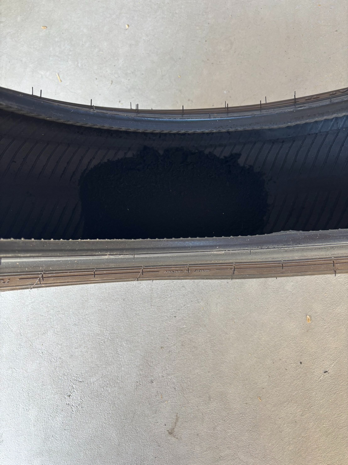 ホイールからタイヤを取り外してみると、タイヤから黒い粉が…
