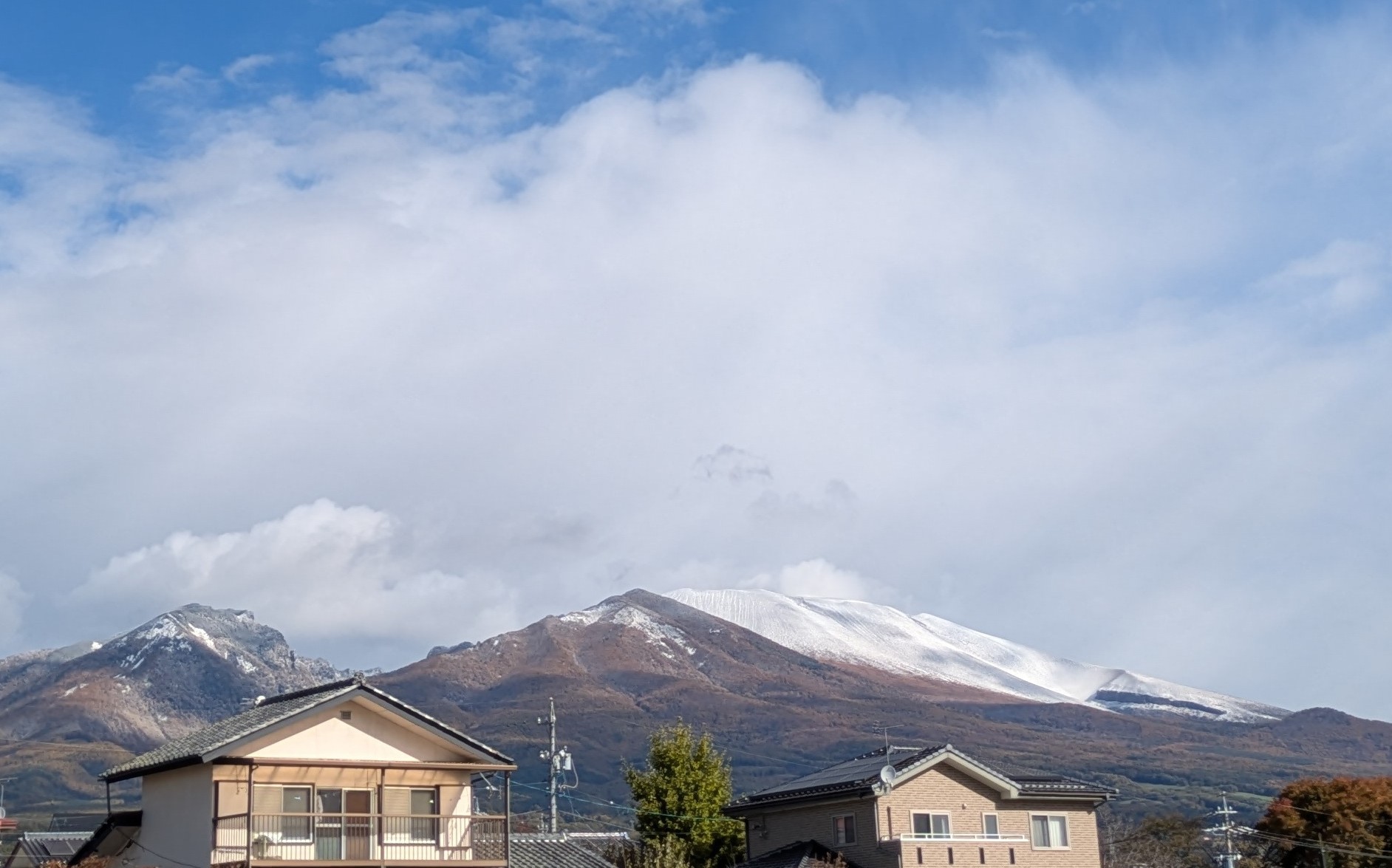 浅間山の山腹のあたりが雪が積もり、白くなっています!