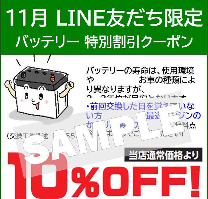 LINE友だち限定バッテリークーポンを配信中!