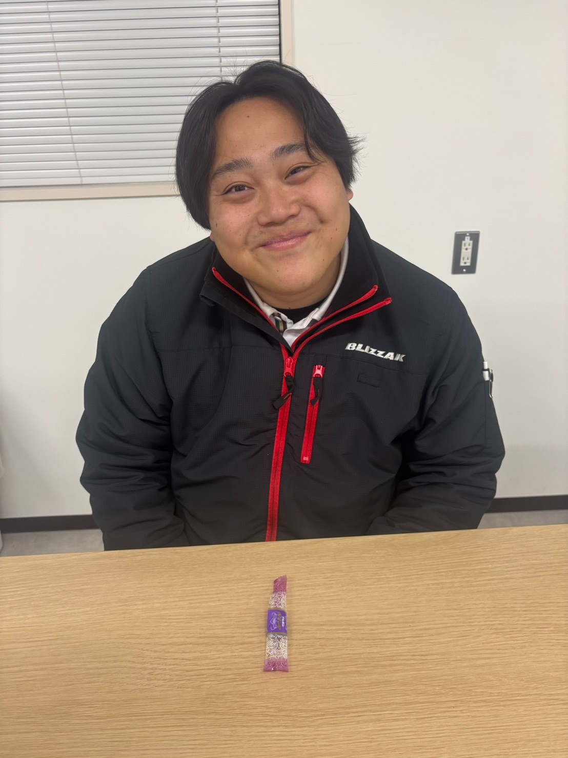 タイヤ館千曲周辺の路面状況 ポスト 2026年1月22日 こんにちは、KAZZです。 今日はとても寒いです。 今朝タイヤ館千曲の駐車場には5cmほど積もっていました。 タイヤ館千曲周辺の路面状況はあまりよくないのでお気をつけてお越しください。 KAZZは今年の抱負で「食べ過ぎない」と宣言をしたのですが 先日お菓子をつまみ食いをしてしまいました。 幸せそうな顔を皆様におすそ分けいたします。 今後はお菓子のつまみ食いも注意してまいります。 担当:KAZZ