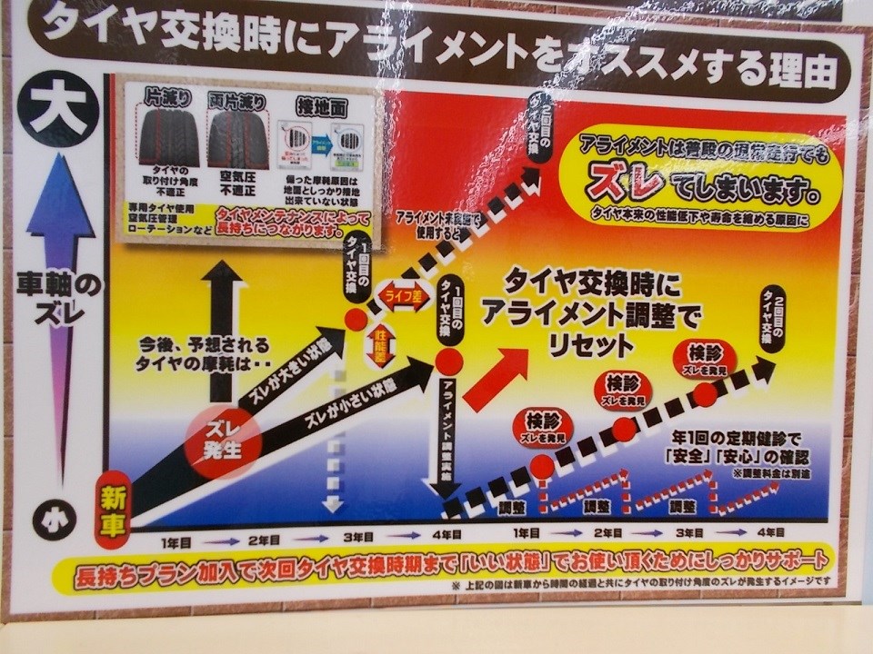 新品タイヤをご購入いただければ アライメント長持ちパック というのに加入することができます!
