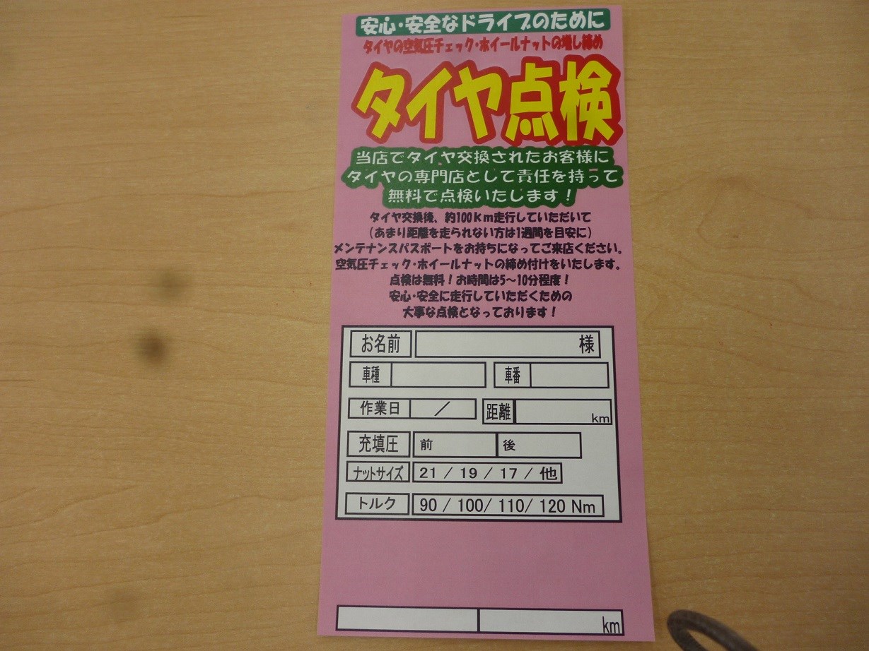 タイヤ点検についてです♪