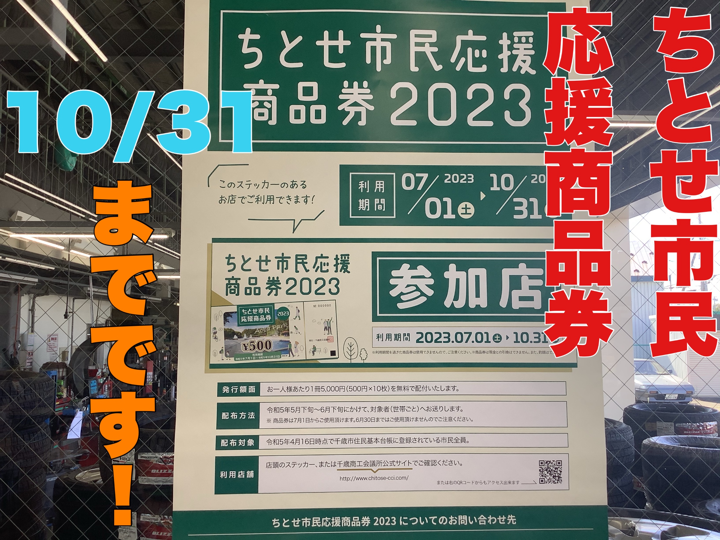 ちとせ市民応援商品券 10月31日まで!! ポスト 2023年9月29日 こんにちは!澤田です! ちとせ市民応援商品券みなさん使用しましたか? まだ残ってる!という方ご利用期間10月31日までです! 当店でもご利用いただけるのでお忘れずにお使いください! タイヤ館 千歳 住所:066-0022北海道千歳市豊里2-1-3 電話番号: 0123-42-1234 タイヤ点検・安全点検/タイヤ履き替え/オイル交換/その他ピット作業の予約 担当:澤田