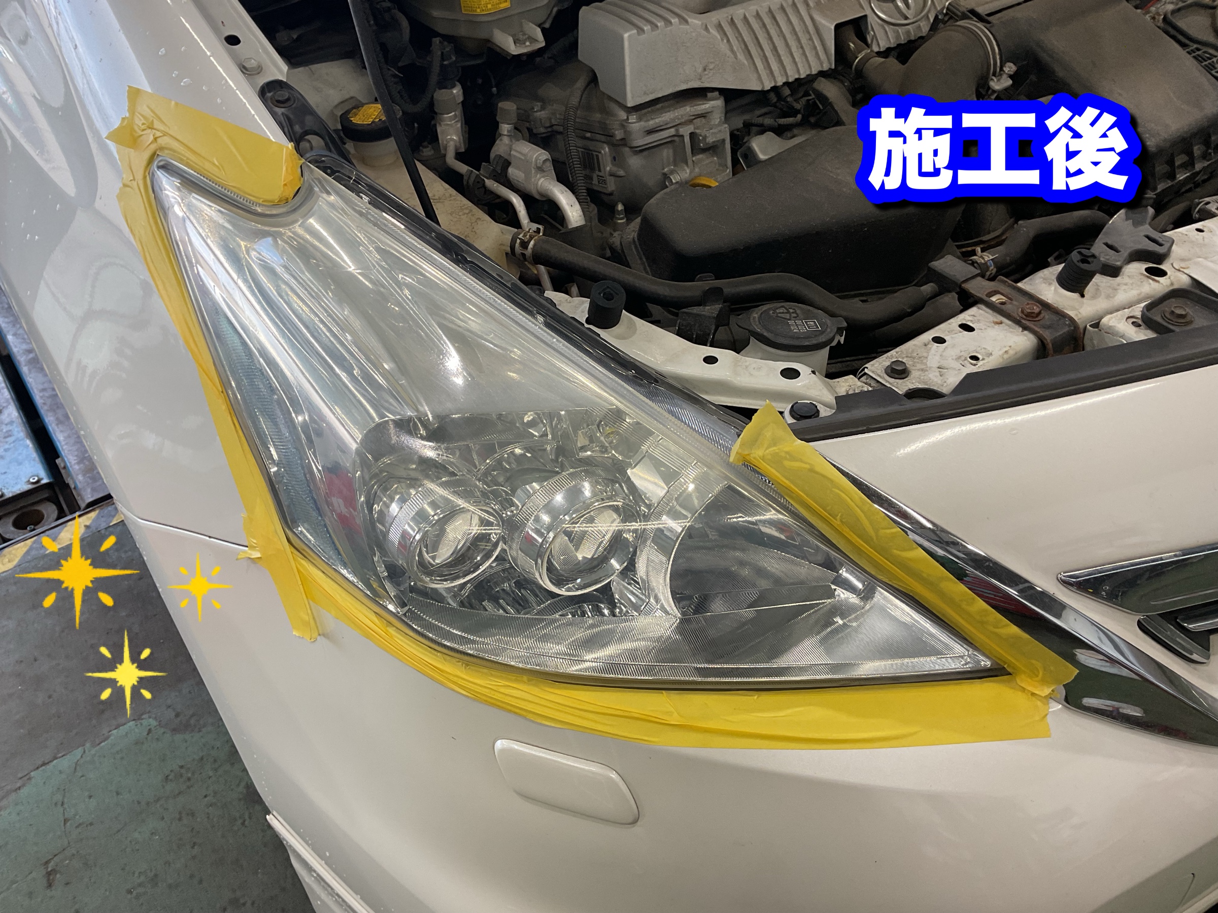 ヘッドライトコーティング、料金は左右合わせて3,300円、時間は20分ほどです。