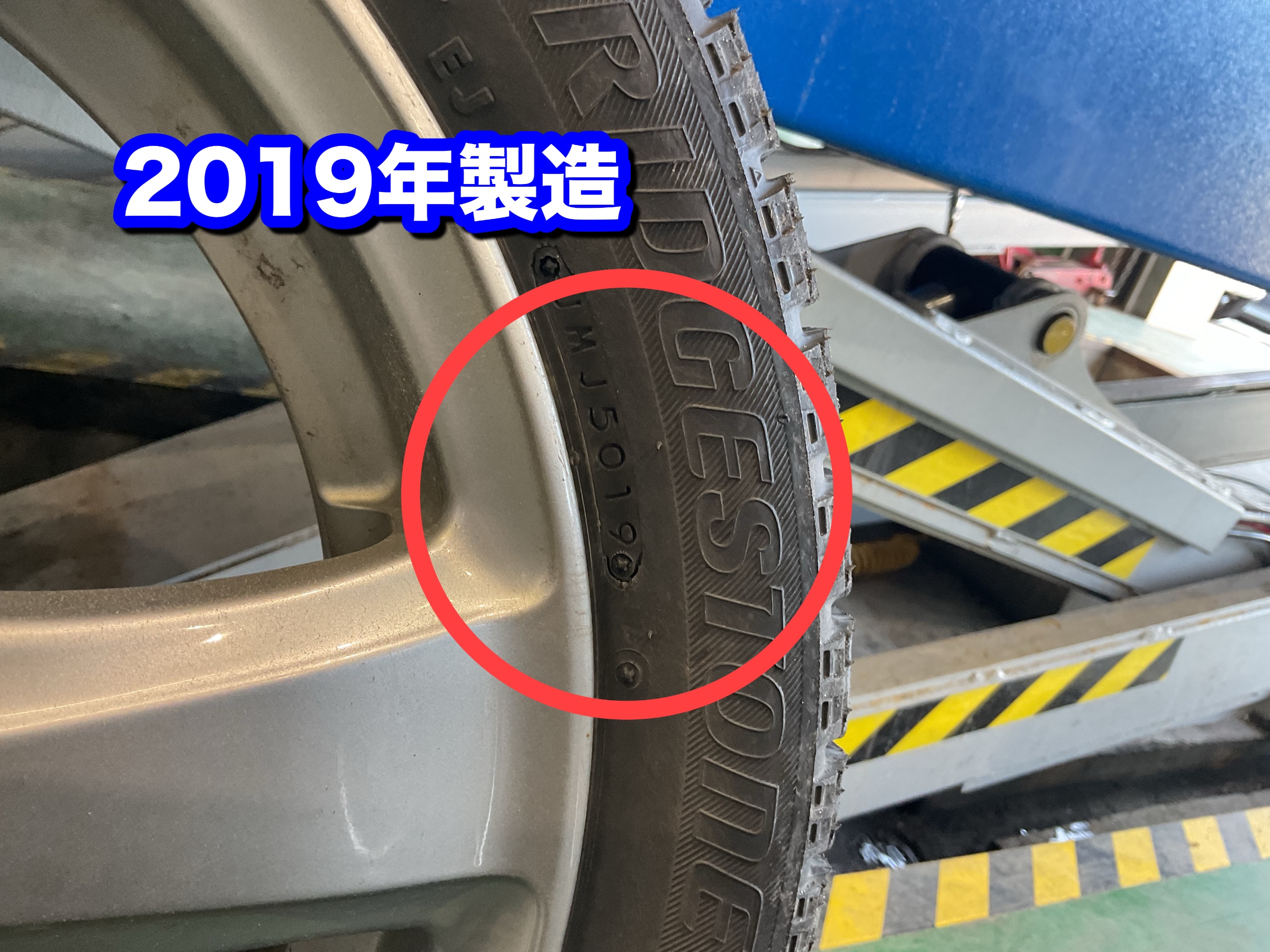 タイヤの製造年は2019年後半。今から6年前です。