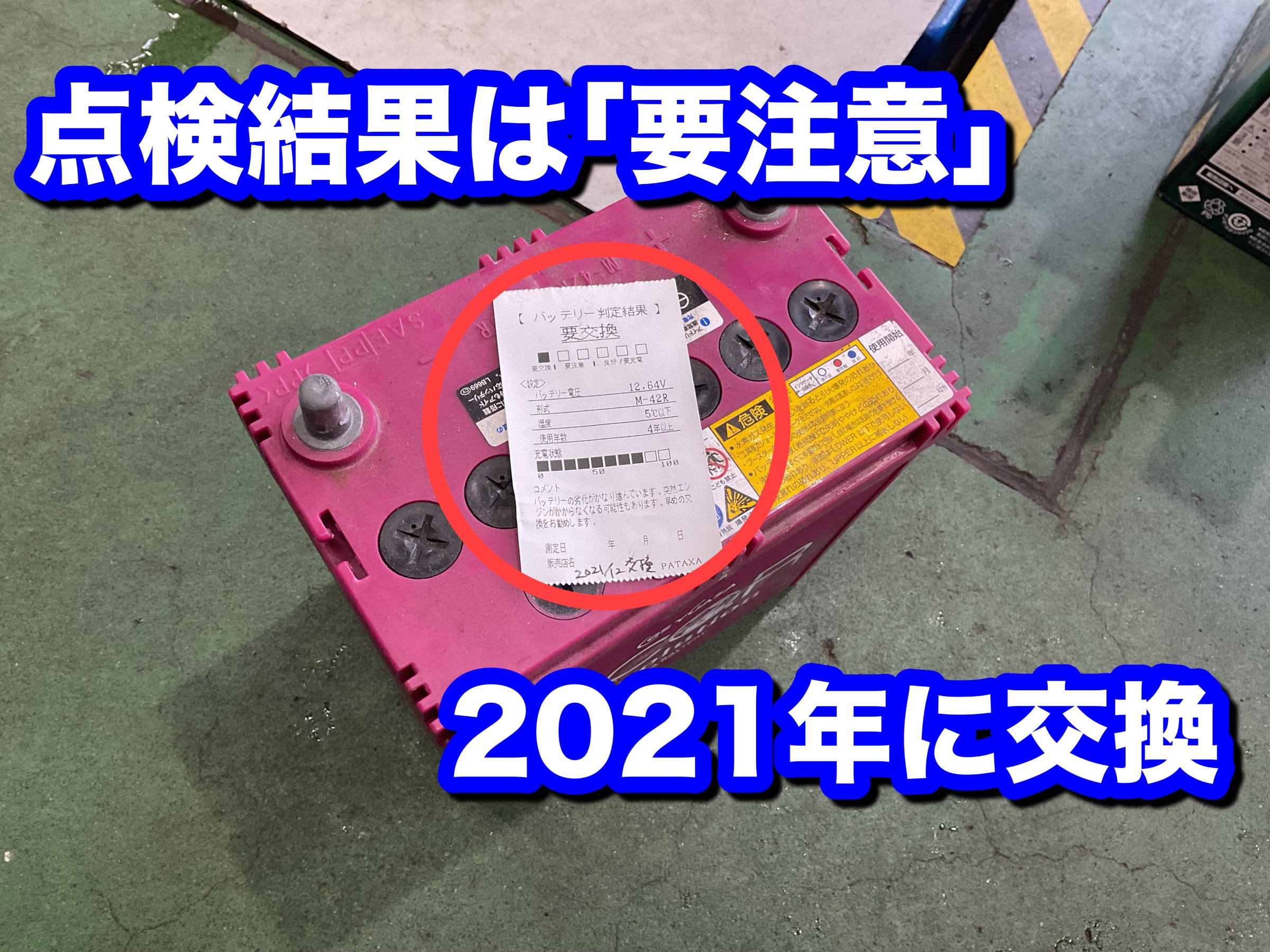 ↑バッテリーを点検させていただいたところ、判定結果が「要注意」