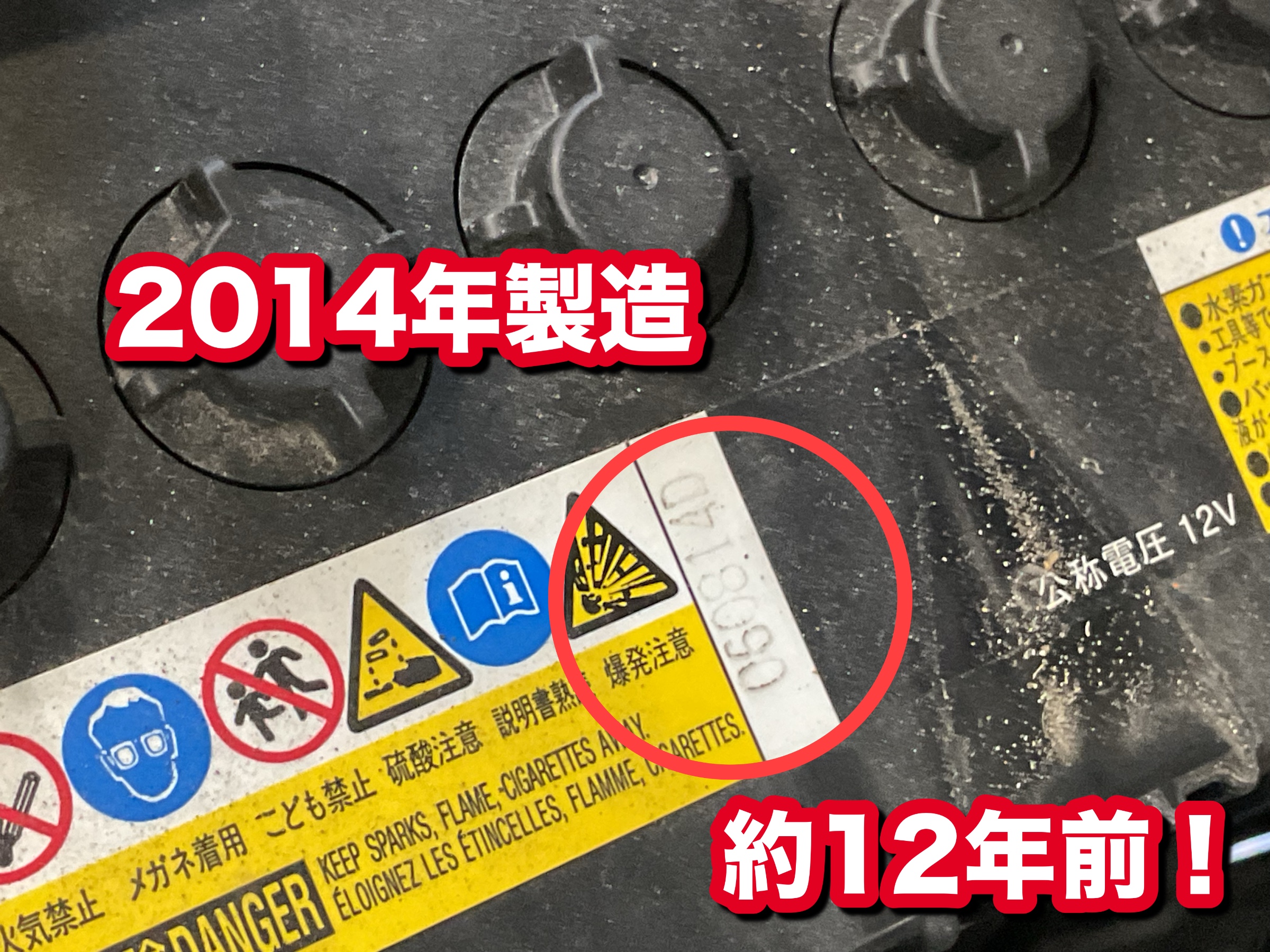 製造年を確認。なんと2014年製のバッテリーが付いていました!12年前です。