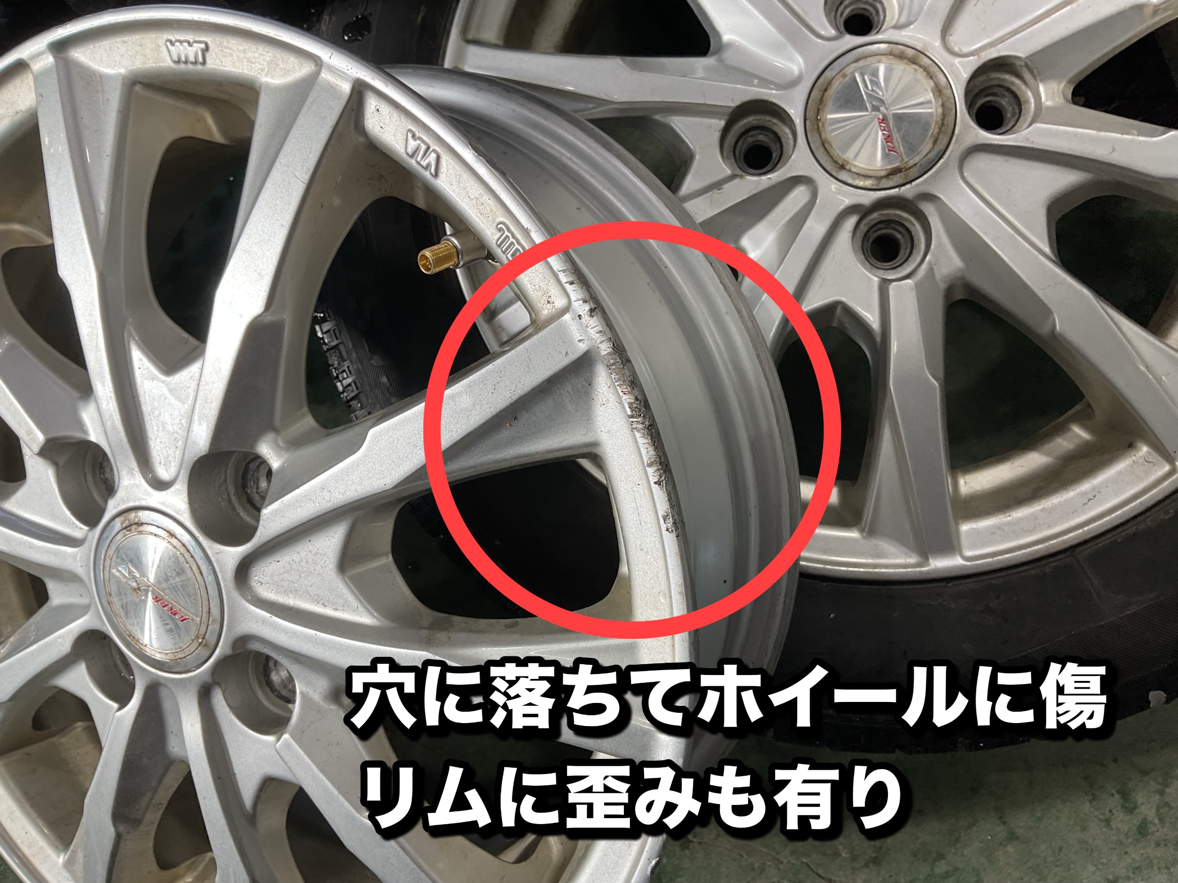 なんとホイールにも傷が入り、少しゆがみも出てしまっていました。