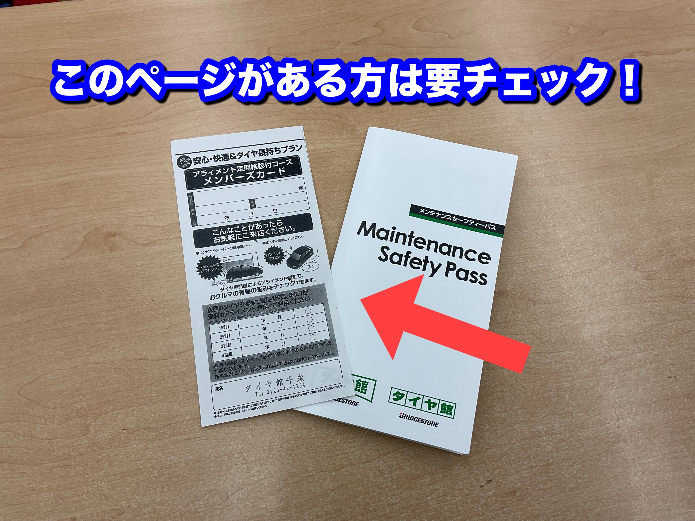 当店にてタイヤをお買い上げいただいた際にアライメントの定期健診プランにご加入お頂いております。