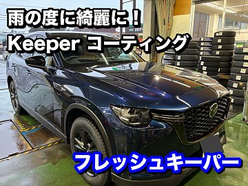 こんにちは、安藤です。 今回は新車のCX-60にKeeperコーティングを当店ピットにて実施させていただきましたのでご紹介です! ご注文いただいたメニューは最新の「フレッシュキーパー」です。 納車直後ですが、まずは高圧洗浄機で水洗い。細かい砂や泥を落とします。 続いて泡洗車をします。ホイール...