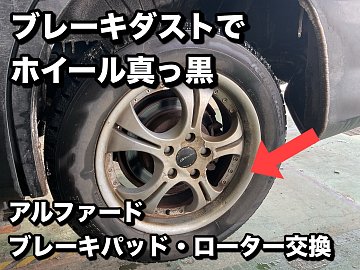 ブレーキダストでホイール真っ黒… アルファード パッド・ローター交換