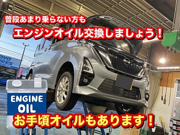 あまり乗らないお車もオイル交換しましょう!お手頃オイルもあります!