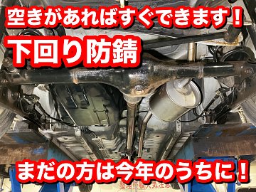 こんにちは、安藤です。 2025年も終わりが近づいています。タイヤ館千歳店は12月29日(月)までの営業です。 年末年始、帰省やお出かけなどで長距離移動を予定している方も多いと思いますが、 車の錆び対策はしましたか?まだの方はぜひタイヤ館にて防錆作業を! 年末は比較的入庫が少ないので、空き...