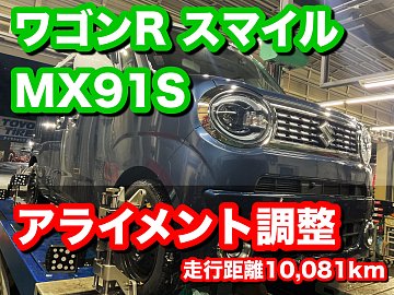 # こんにちは、安藤です。 先日、縁石にホイールがぶつかってしまったという ワゴンRスマイルのアライメント測定・調整をしました。 走行距離は1万キロを超えたばかりのまだ新しいお車です。 ↑まずは測定。 右側からぶつかったのでしょうか、右フロントタイヤが外向きになっています。 ↑軽自動車は...