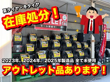 こんにちは、安藤です。 当店では外にアウトレットタイヤのコーナーを設けております! アウトレットといっても中古品ではなく、新品未使用の過年度製造タイヤです。 2026年に入り、2024年・2025年製造のタイヤもよりお得にお買い求めいただけるようになりました! 展示左手には夏タイヤのアウトレ...