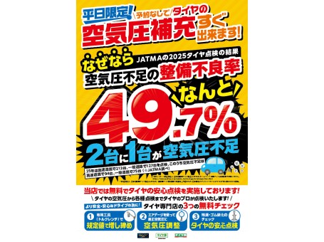 当店でタイヤを購入されたら「100km点検」にお越しくださいね。