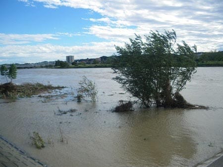 水は茶色く濁っていて、普段歩けるコンクリートの所も