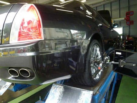 本日、マセラティ・クワトロポルテのアライメントを実施しました。