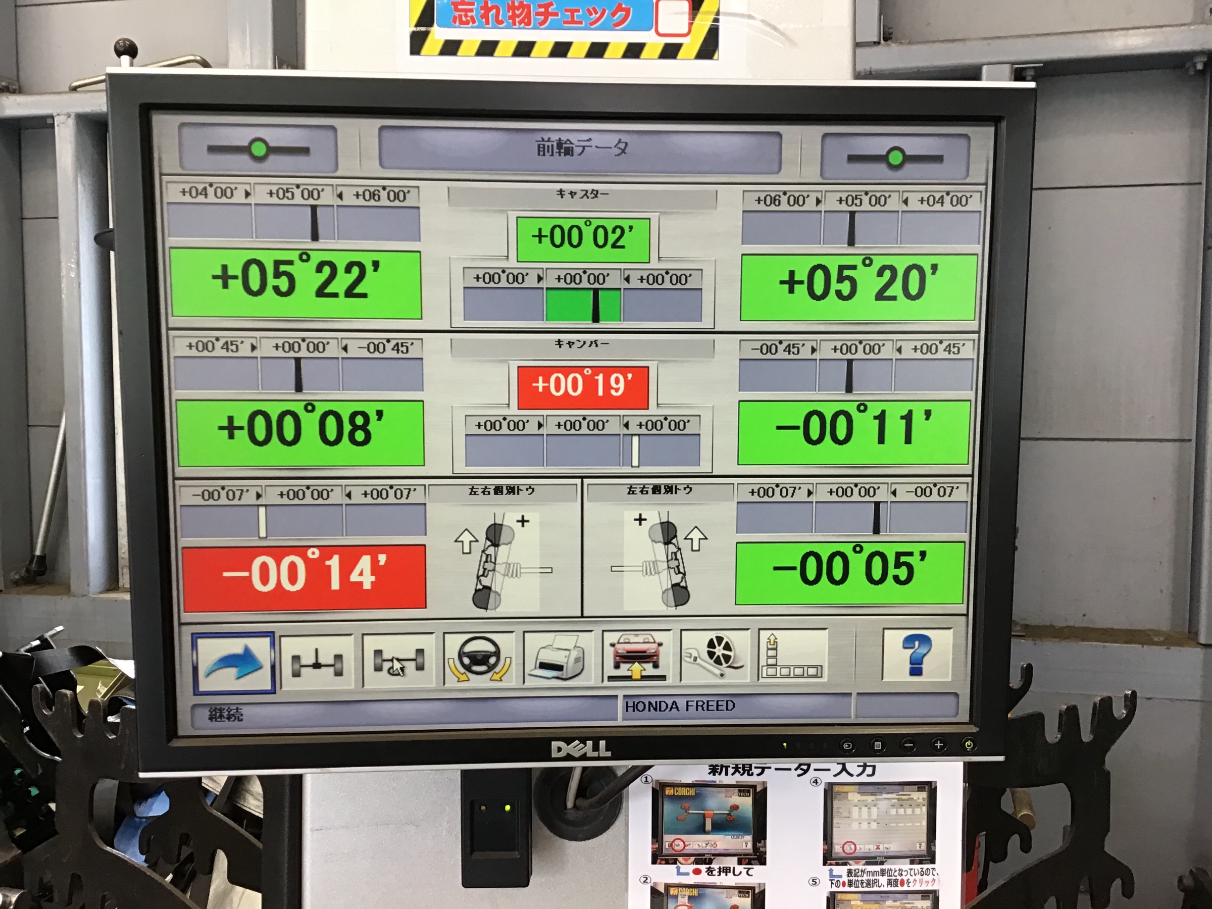内べりの癖がついている可能性があるので、アライメント測定しました。