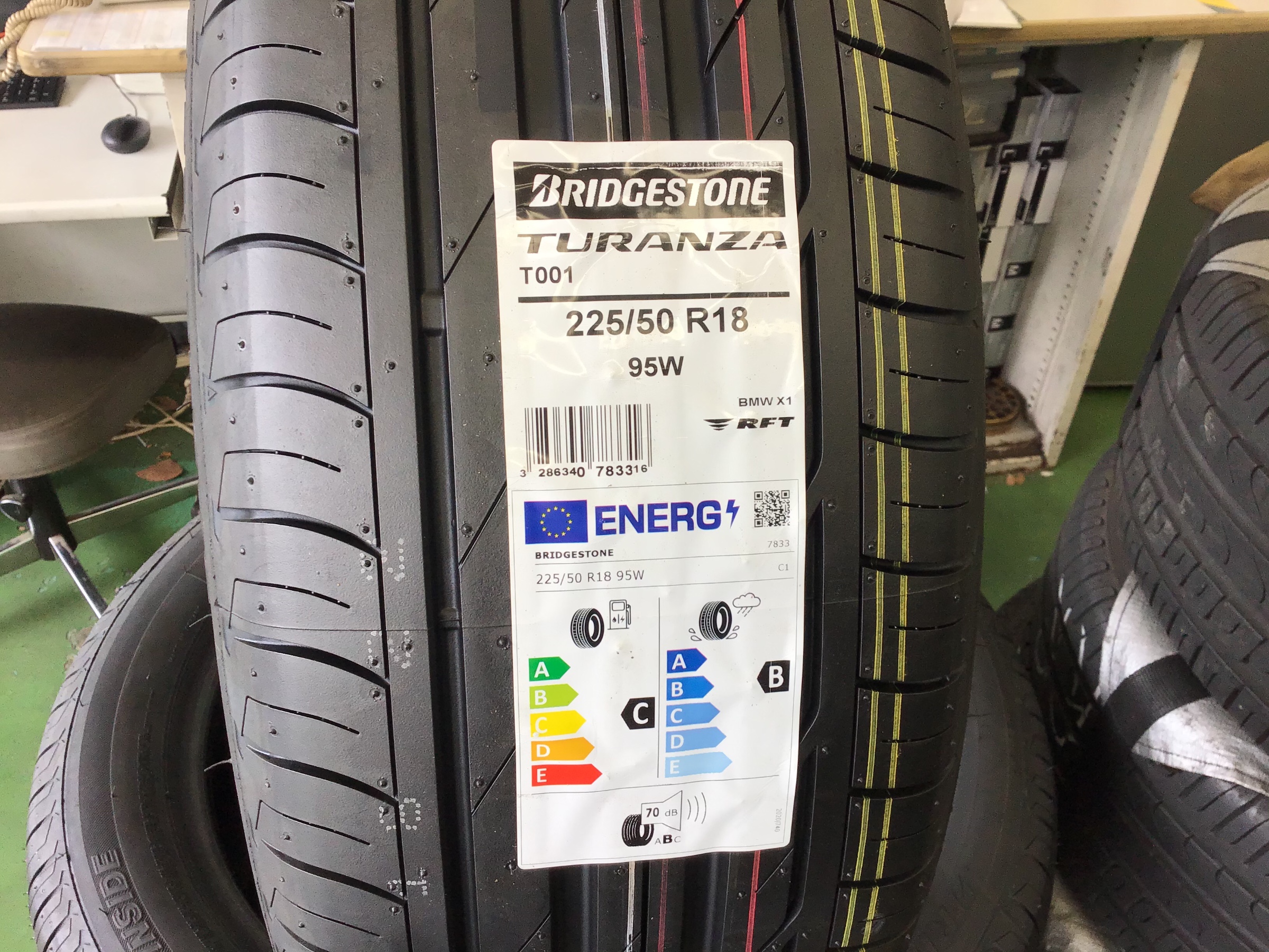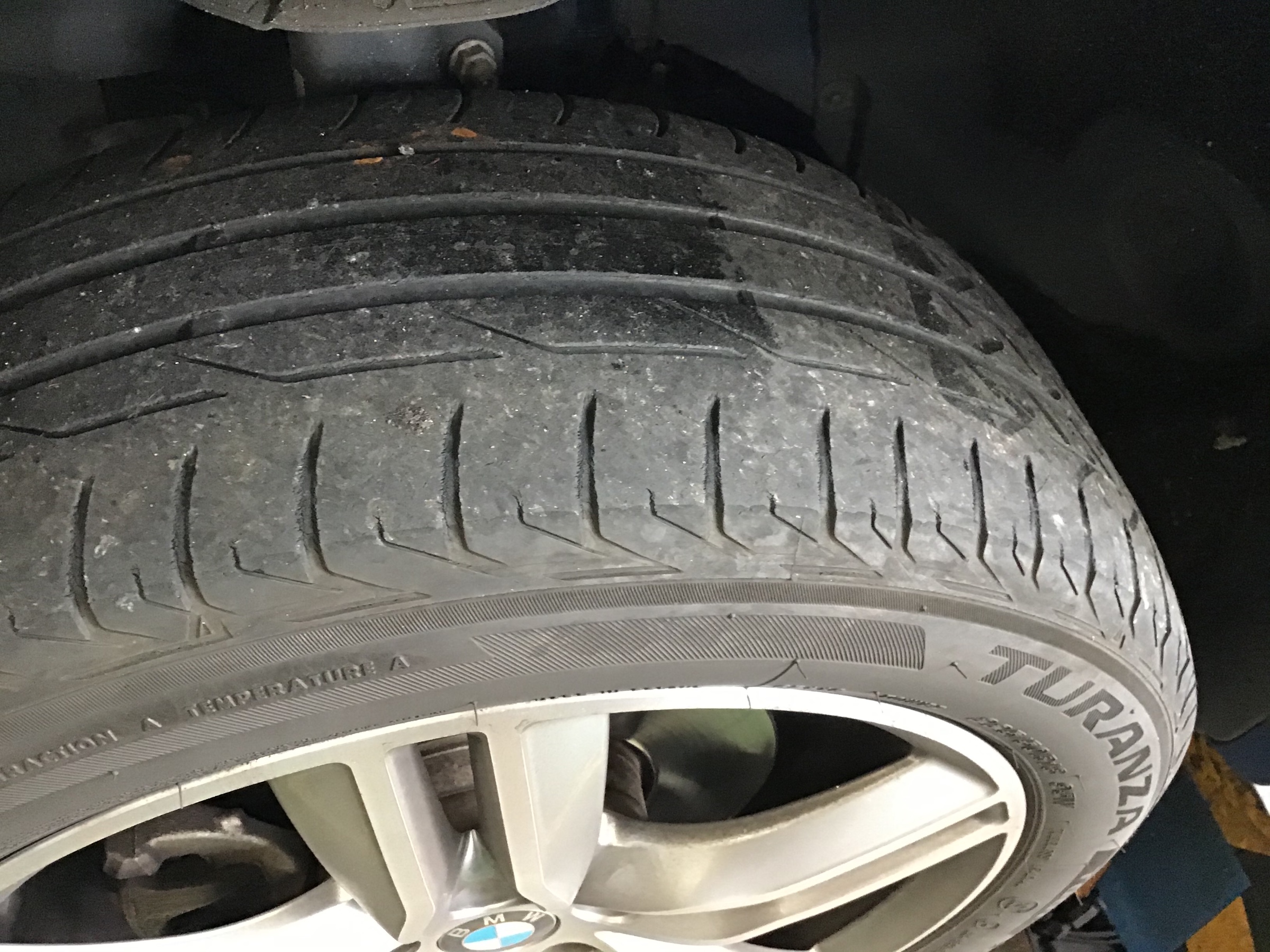 純正から特殊なタイヤ ランフラットタイヤが付いています。今回は前回と同じタイヤをご用意しました。
