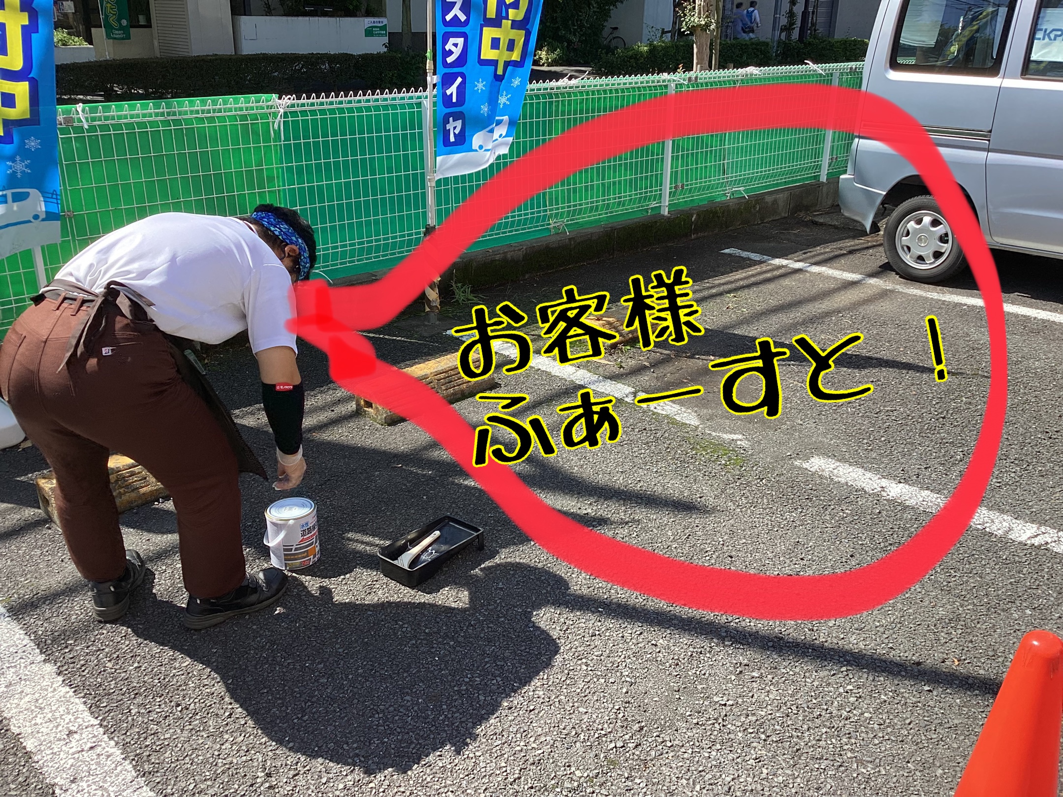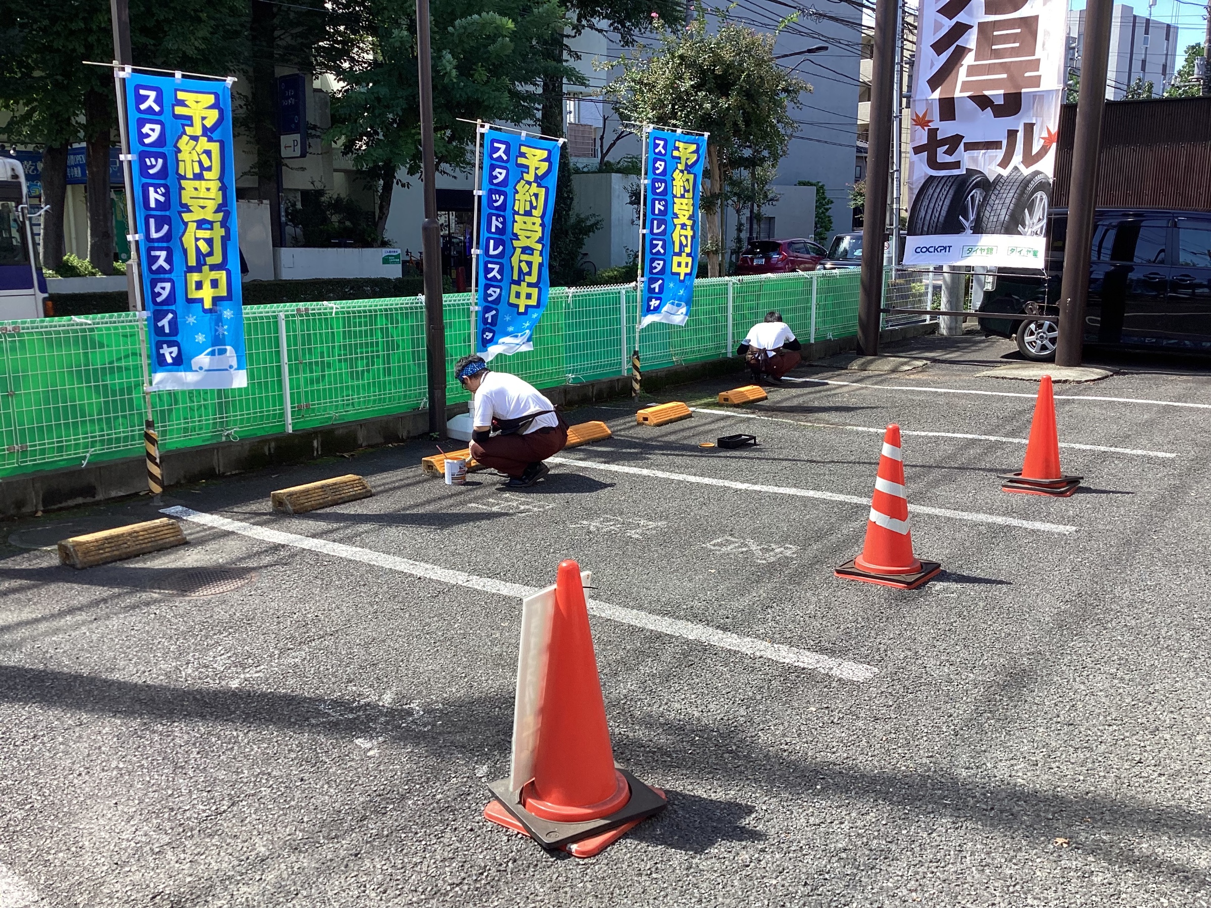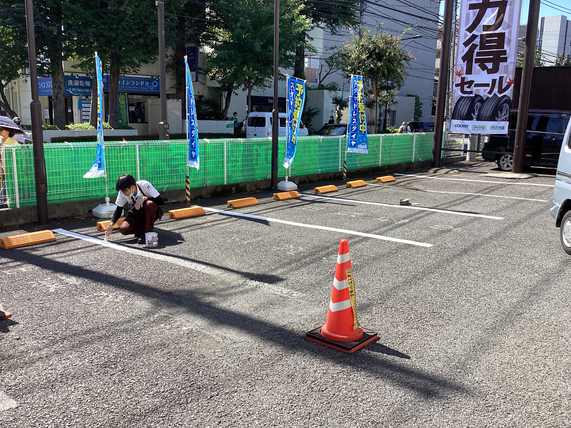 約1時間でペンキは乾きましたので、駐車場を区画ごとに閉鎖しましたが