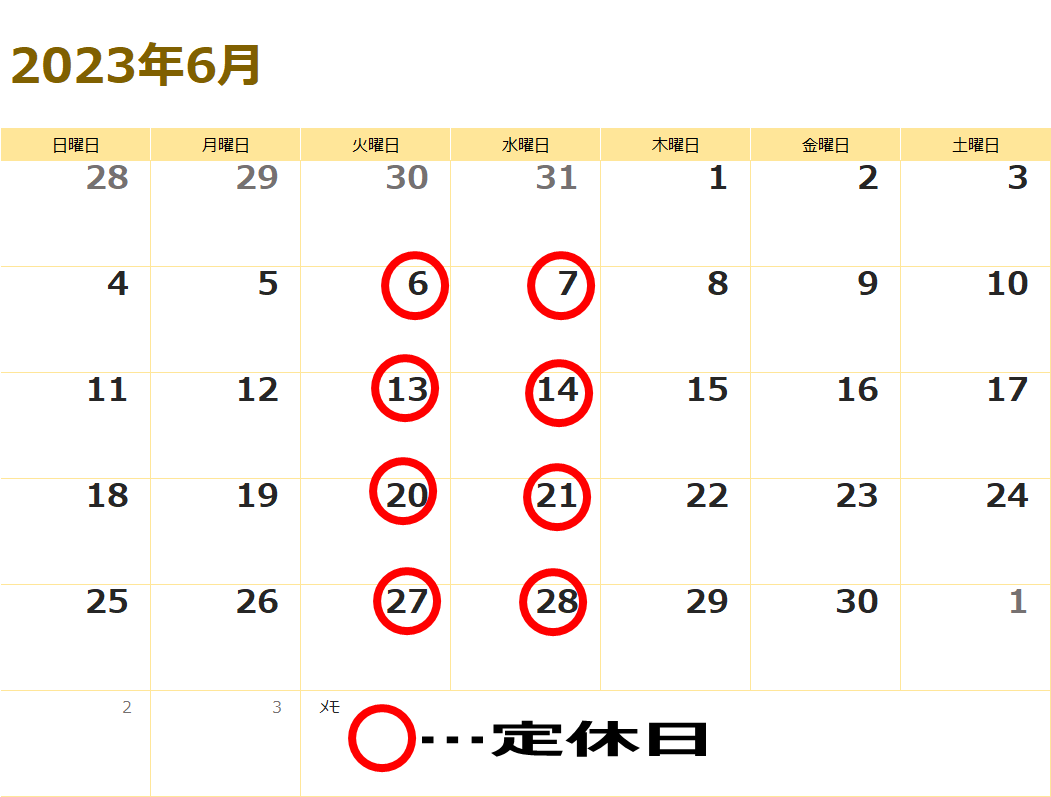6月 営業日のお知らせ