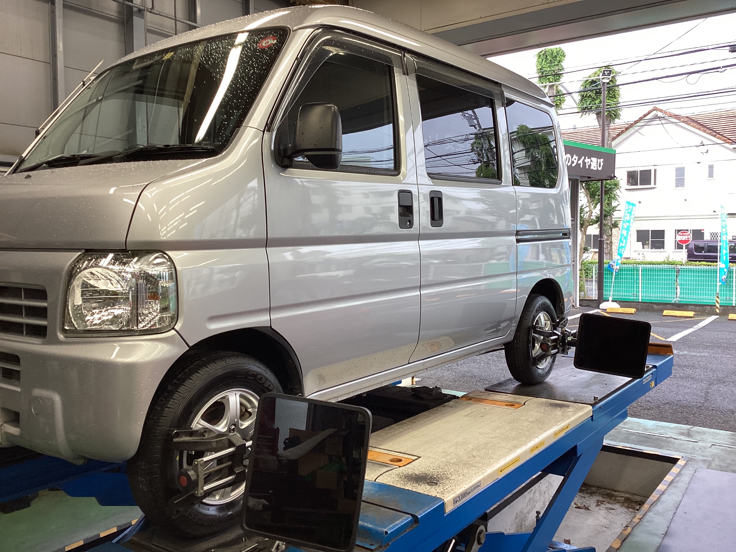 アクティ アライメント調整。 軽バンで片減りが目立つ方は必要です。