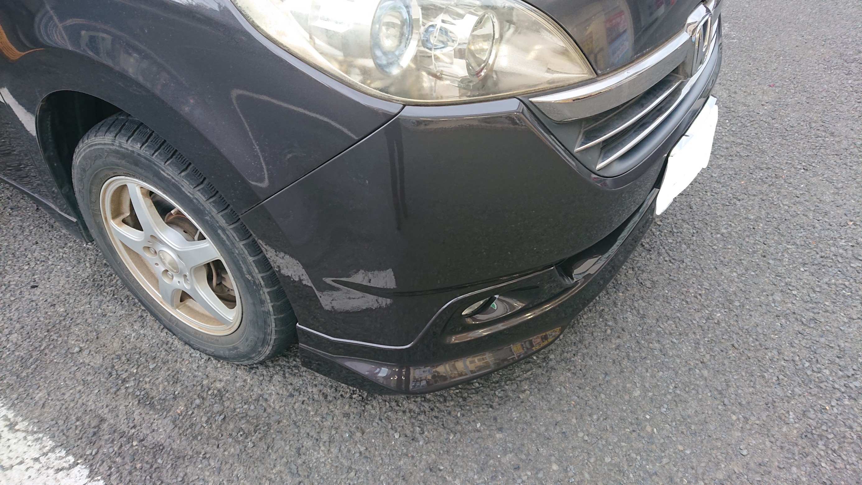 接触事故にてバンパーに傷がつきました。