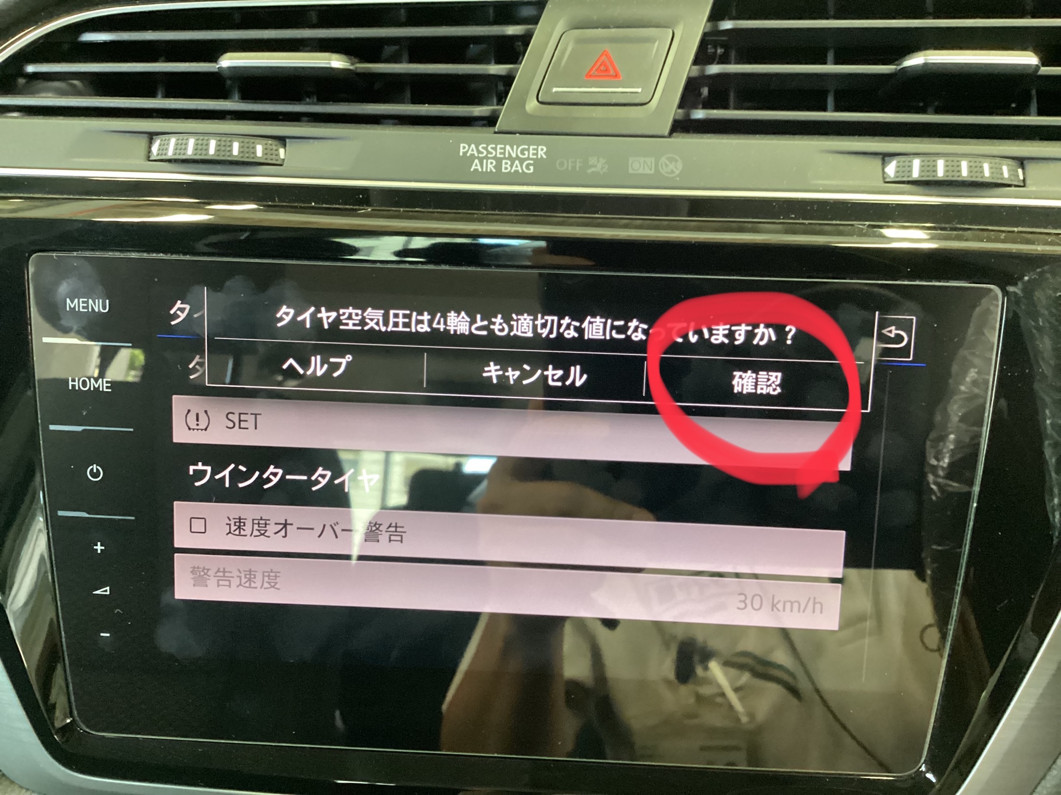 VW TOURAN タイヤ空気圧警告灯 リセット