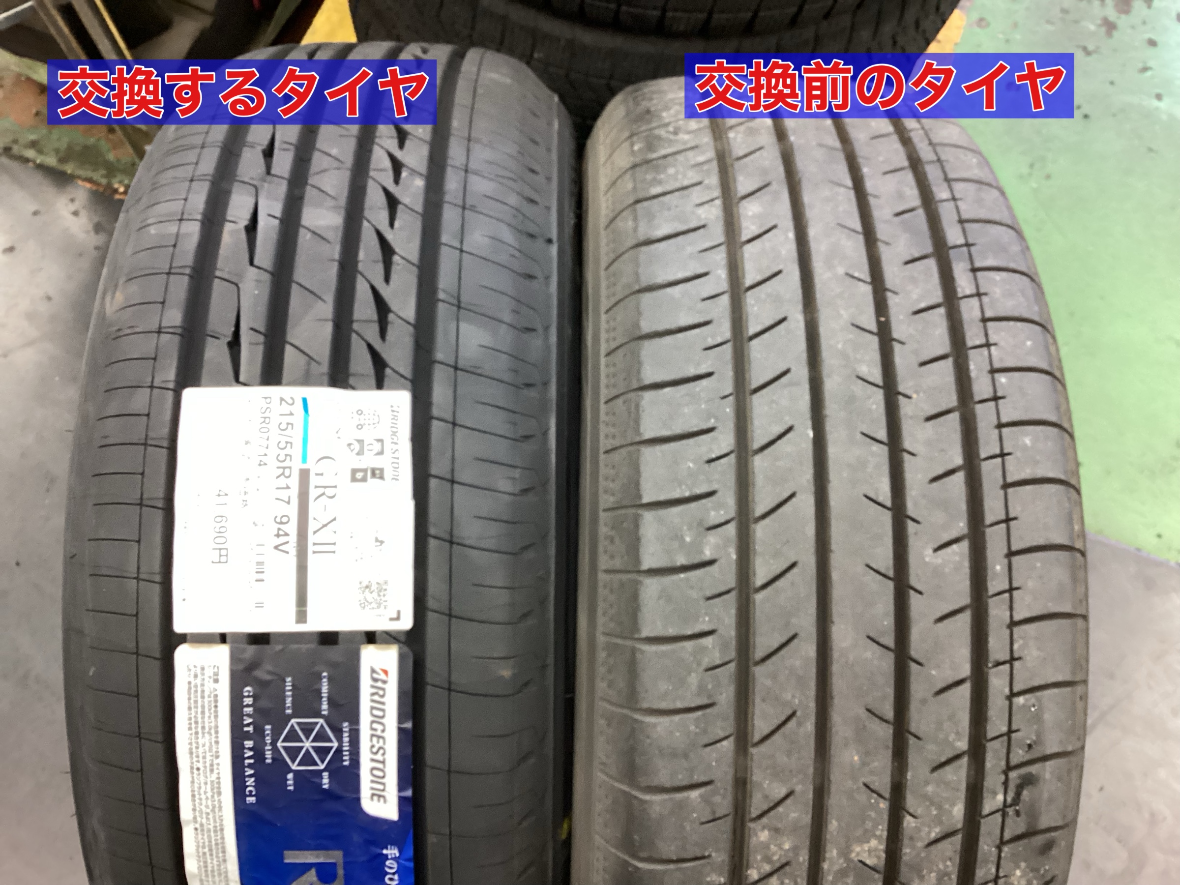 交換前のタイヤ