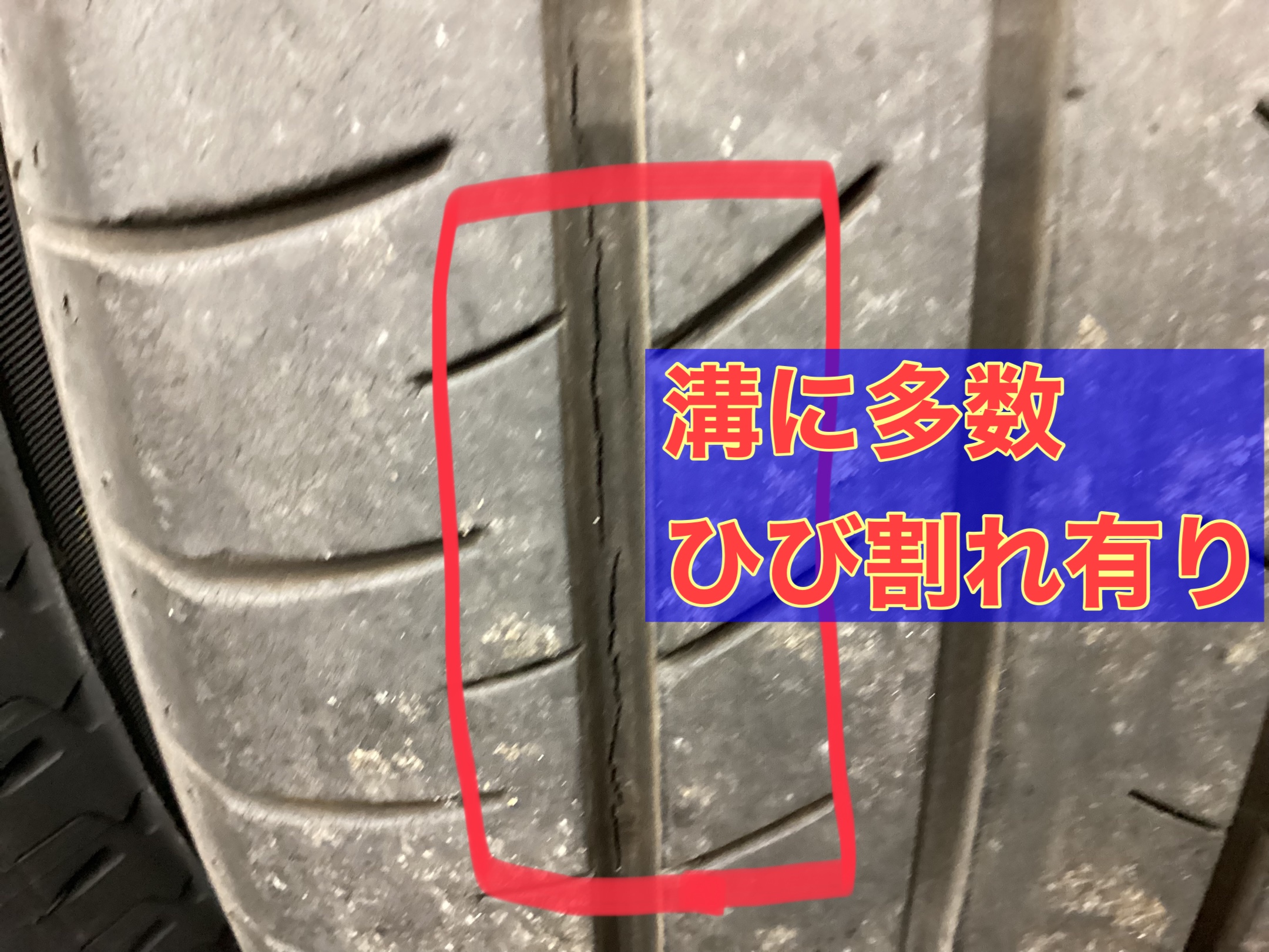 タイヤ側面にはひび割れはありませんでしたが、
