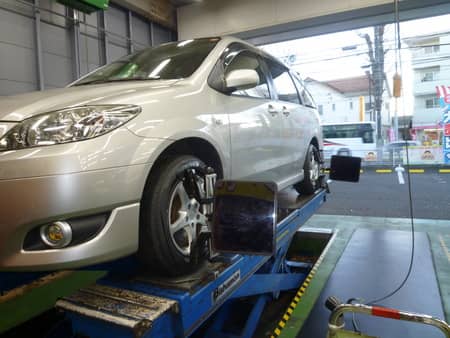 走行安定性・編摩耗軽減の為のタイヤの角度調整(アライメント)も実施