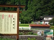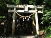 山間の一本道をしばらく走ると見えてくる。鳥居をくぐり狭く急な石段を登っていく。
