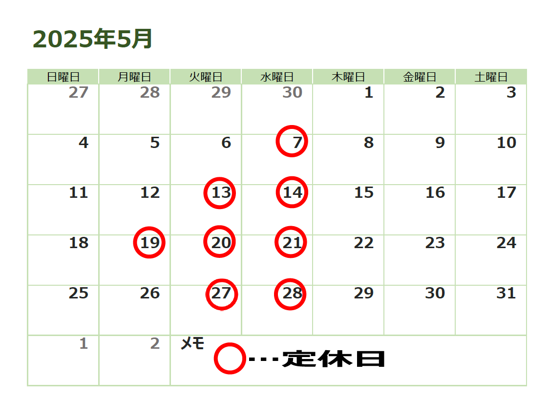 2025年5月 営業日のお知らせ ポスト 2025年4月26日 日々のご愛顧、誠にありがとうございます。 タイヤ館調布店より2025年5月の営業日をお知らせします。 タイヤ館 調布 住所:182-0022東京都調布市国領町4-41-6 電話番号: 042-442-1505 相談予約
