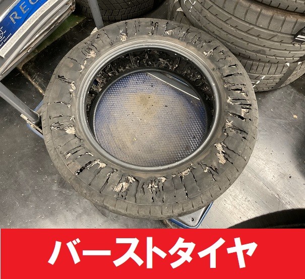 走行中に一気に空気が抜ける現象で、徐々に空気が抜けていくパンクとは異なります。