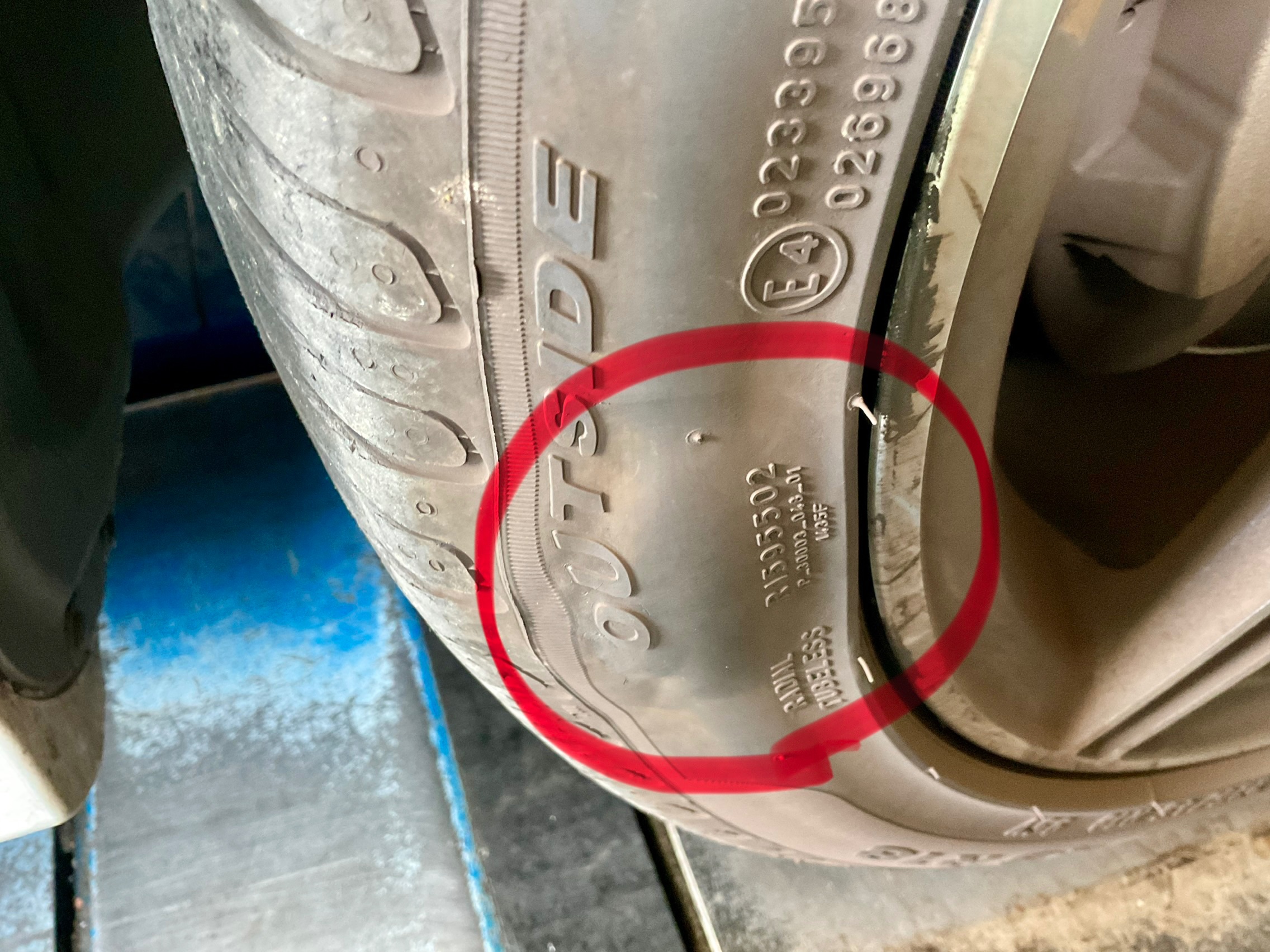タイヤの横の部分が水膨れの様に