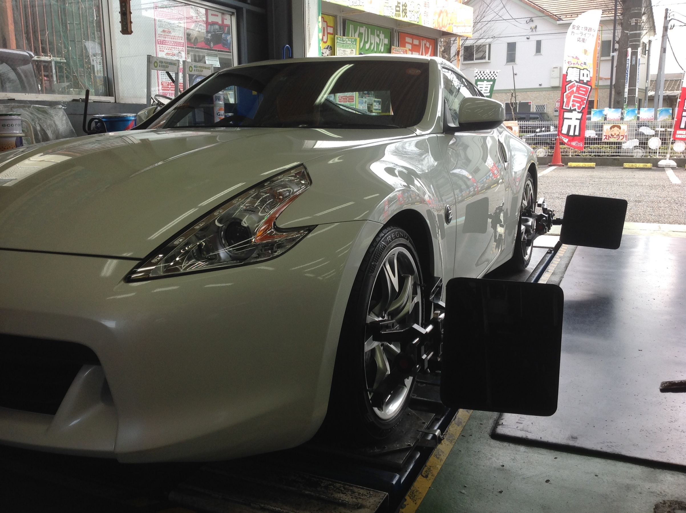 本日はフェアレディZのタイヤ交換、アライメント作業をご紹介。