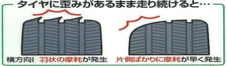 偏摩耗タイヤの場合、アライメント不良のまま走行を続けると、