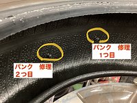 プジョー 308 タイヤ交換しました。 新車から約3年のお車です。パンクからのご来店です。 パンクの原因を確認すると2ヶ所からエアー漏れが確認できその場でJAFさんに応急修理していただいてご来店なりました。お客様も心配なのでタイヤ交換ご希望でご来店になりました。 パンク修理跡から近いパン...