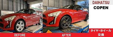 こんにちは! 今回は、DAIHATSU COPEN のタイヤ・ホイール交換です。 イベントに行くにあたり、新しいタイヤセットに交換したいとの事でご相談をいただきました。 オーナー様は既に装着が決まっていた新しいホイールに合うタイヤをお求めでした。 相談の結果、新商品の POTENZA Adrenalin RE005 の...