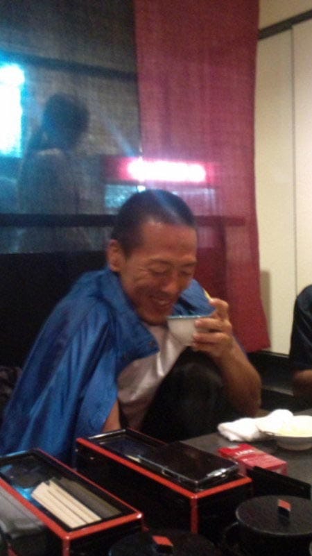 そんな中、さむいさむい~言ってジャンパー羽織って片膝立ててお茶をすすってる武智くんをパシャリ。
